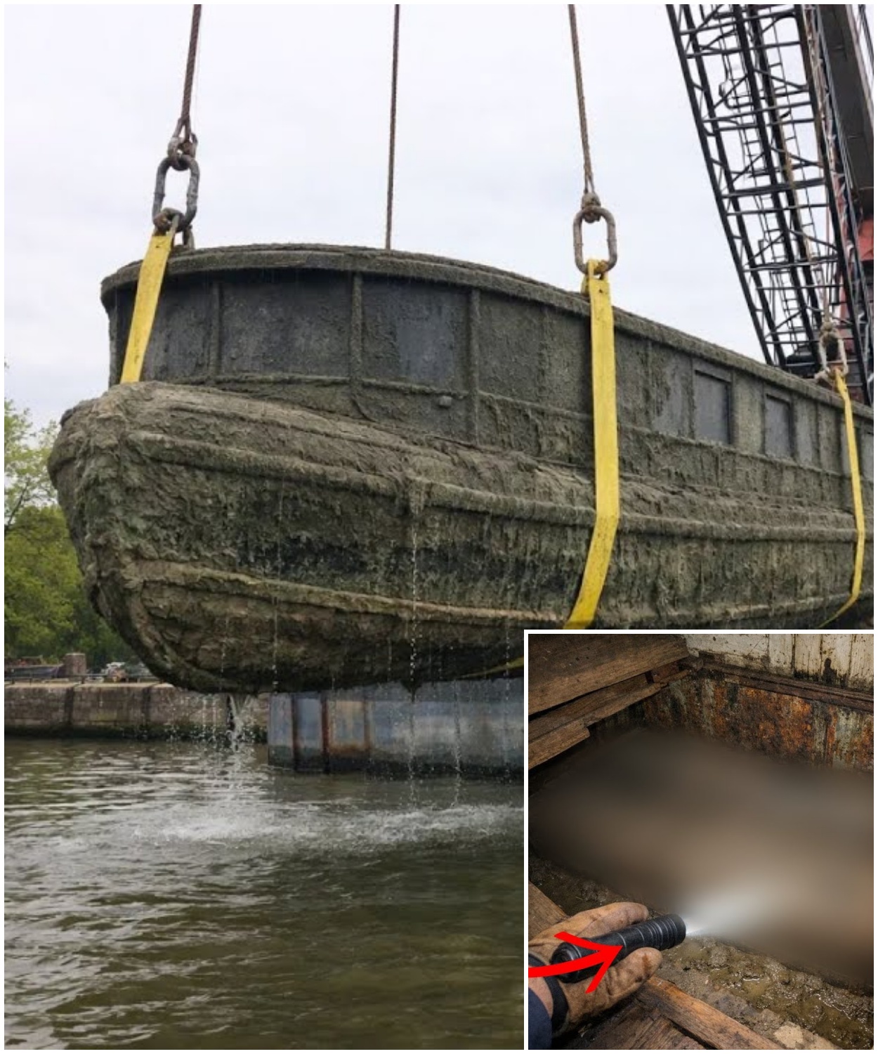 A city crew lifted a sunken housebo from the canal after 90 years, expecting a routine cleanup.