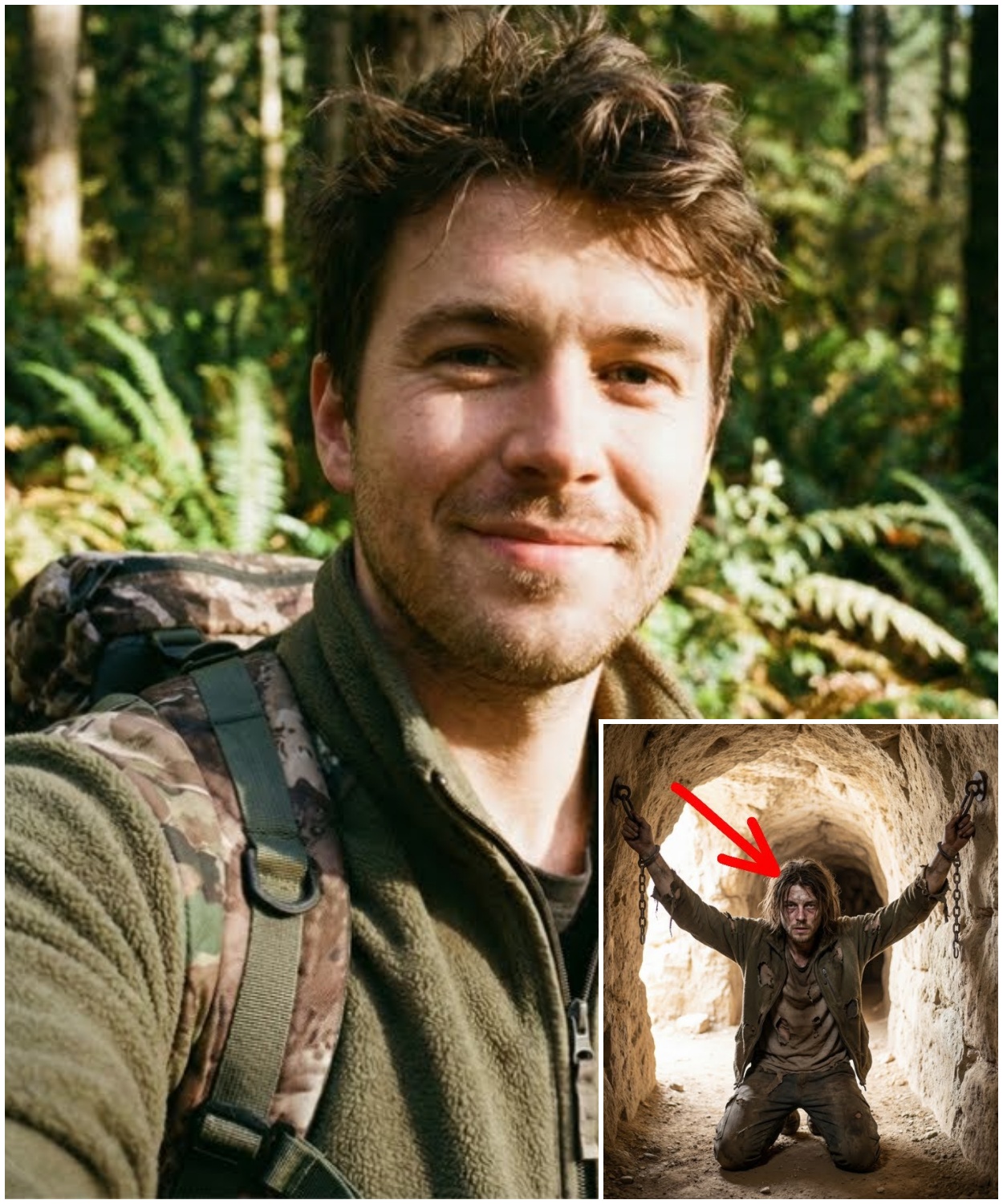 The man chained in the canyon cave was Justin Sharp, the experienced hiker who had vanished without a trace from the Yusede Falls Trail exactly one year earlier.