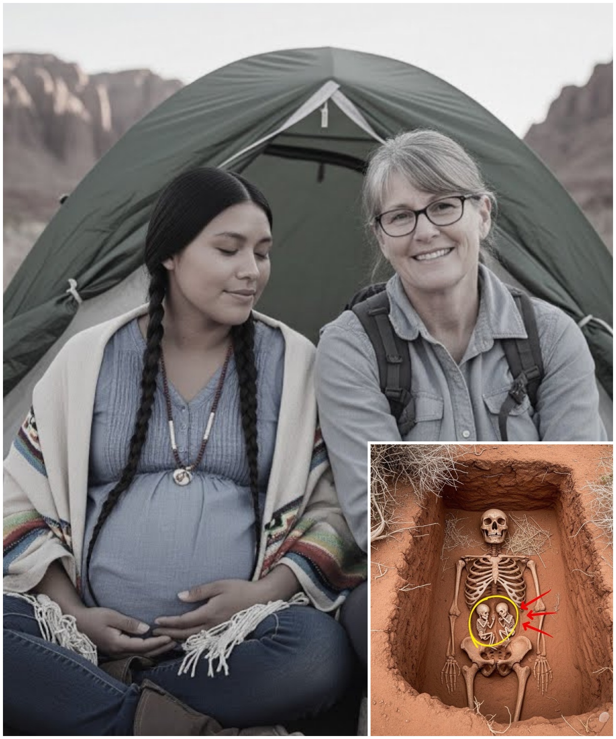 Behind her stood Evelyn, one hand resting on her shoulder, the other shading her eyes from the dying sun.