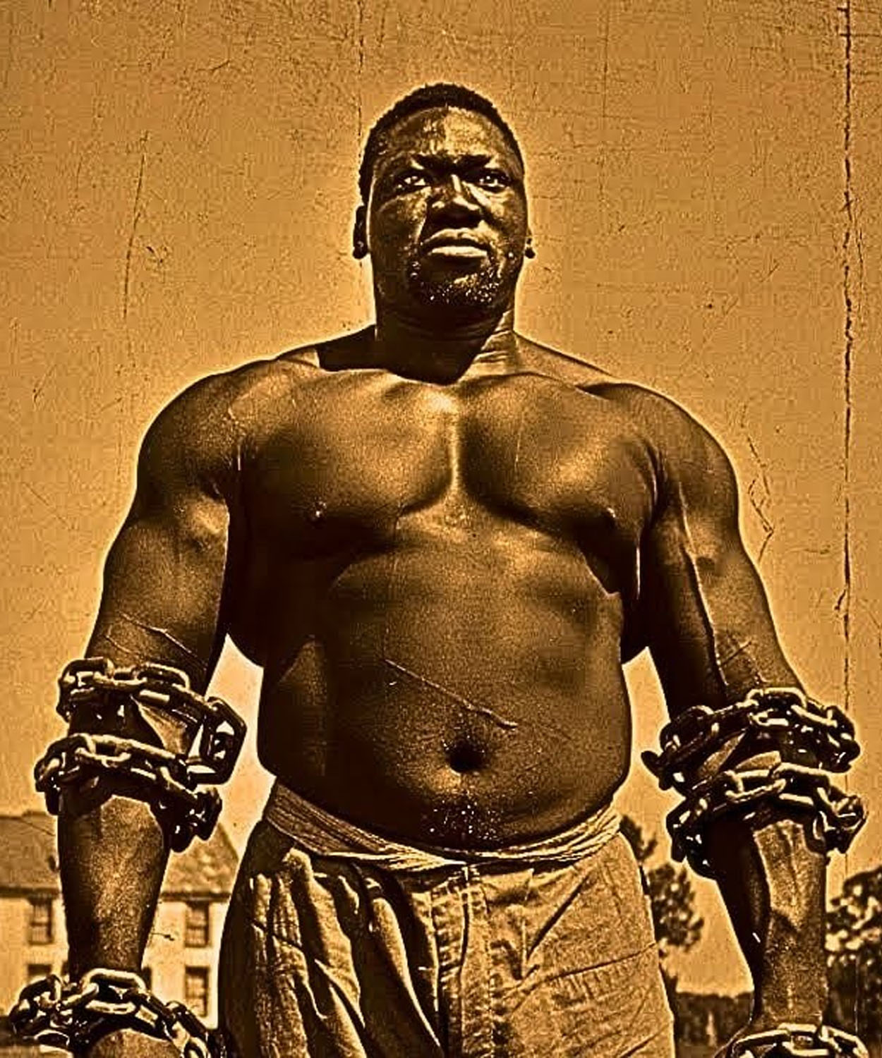 Goliath was led out in heavy chains, thick iron shackles on his wrists and ankles, connected by links as wide as a man’s thumb.
