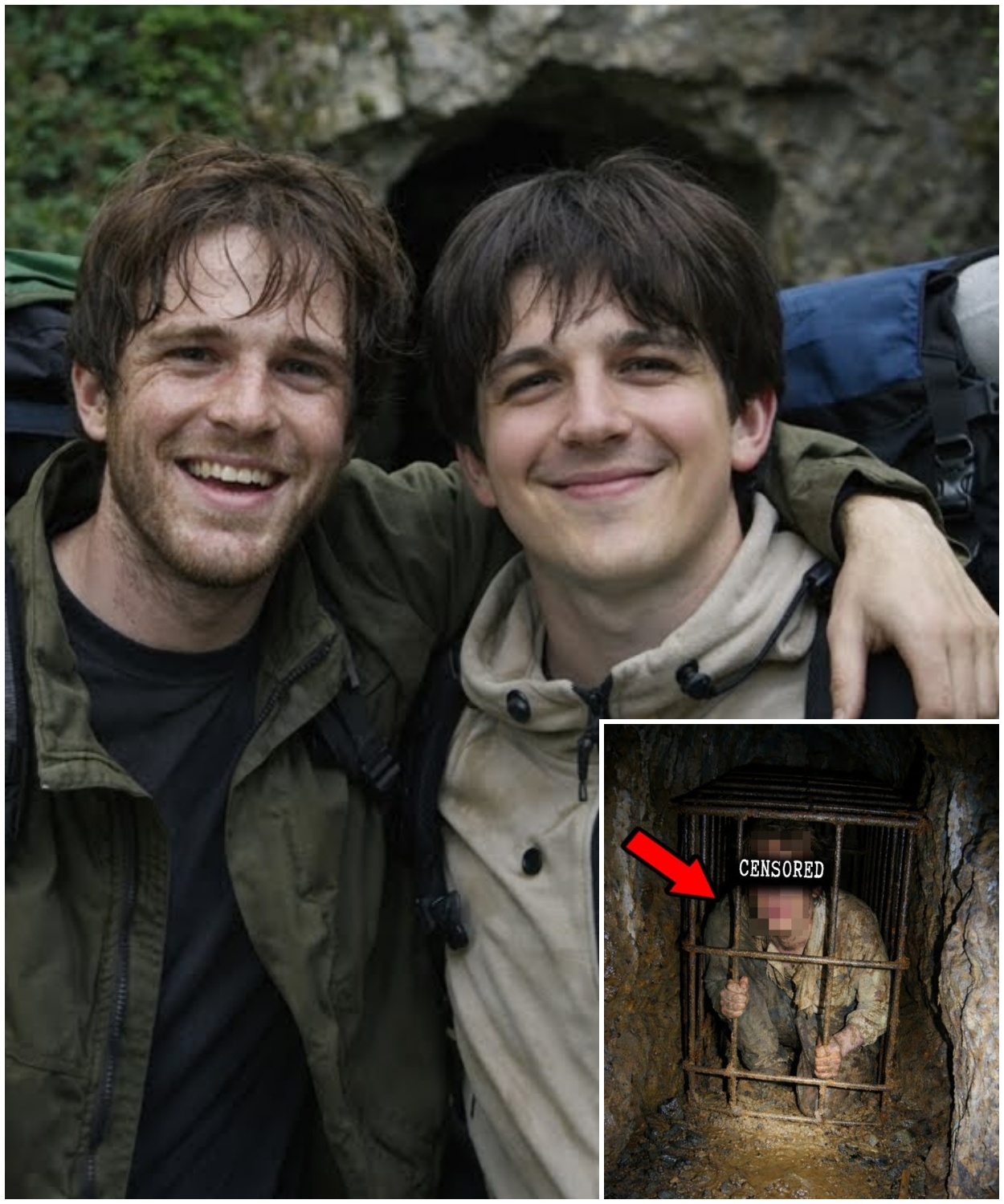 15 days later, the second was found locked in an iron cage in an abandoned technical compartment of the cave, alive, but barely hanging on.